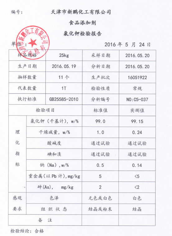 氯化钾检测报告